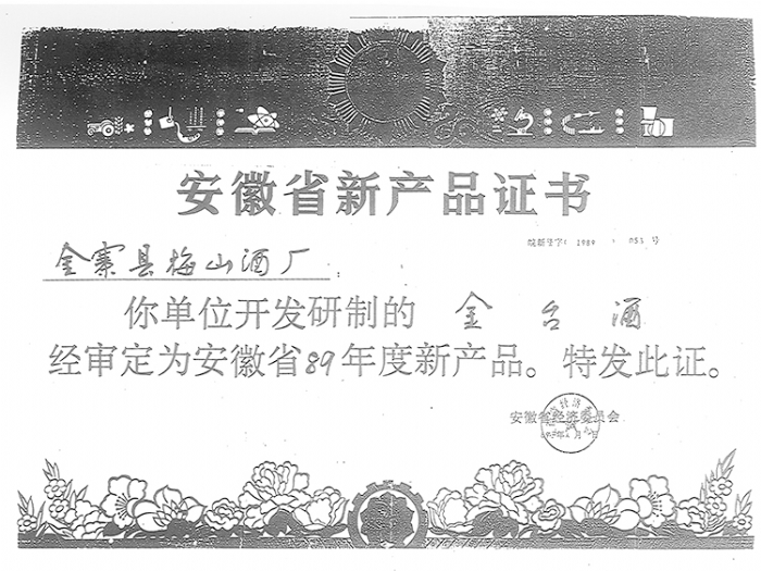 1989年金台酒获得新产品奖