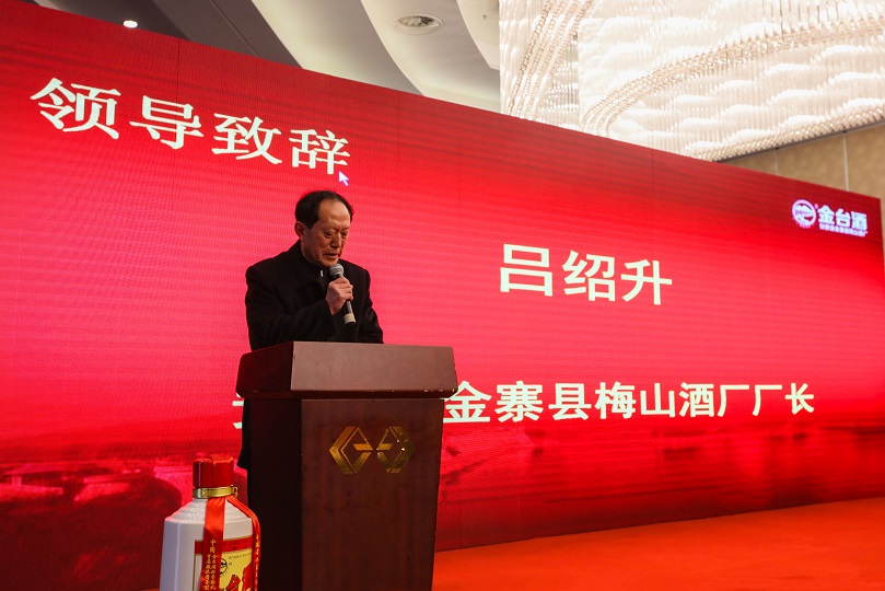 会议中,金寨县梅山酒厂厂长吕绍升回顾了梅山酒厂60年的发展历程并将其分为两个30年,第一个30年前后两个三十年,是从1957年建厂至1986年,在这一时期梅山酒厂发展缓慢。第二个30年是从1986年引进贵州茅台酒传统生产工艺,研发出了金台酒之后的30年,凭借酱香优势填补安徽行业空白,获得了众多的荣誉。近年来,得益于金寨县委县政府以及工业园区的支持,金台酒踏上快速发展新征程。