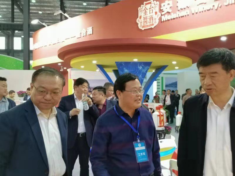 安市第二届工业品展销会于2018年10月在六安市开发区工业园举行,梅山酒厂携金台酒系列产品在自行设计的展位展销。安徽省委常委、六安市委书记孙云飞,市委常委、常务副市长束学龙,市政协主席付新安由梅山酒厂营销和技术总监周俊东陪同亲临金台酒展厅参观指导。