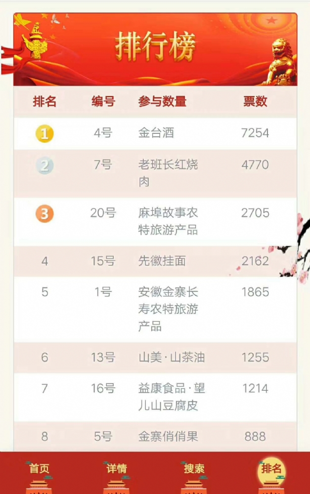 经过两天的评选投票,金寨美食“不得不购”的十大伴手礼评选活动落下帷幕,地方本土特产金台酒、老班长红烧肉、先徽掛面、俏俏果山核桃、山美山茶油等产品均名列其中。